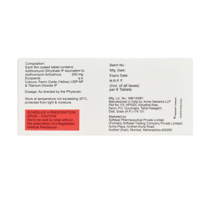 | Dosering (medisch) | Meestal 500 mg op de eerste dag, gevolgd door 250 mg per dag gedurende 4 dagen of zoals voorgeschreven door een arts |